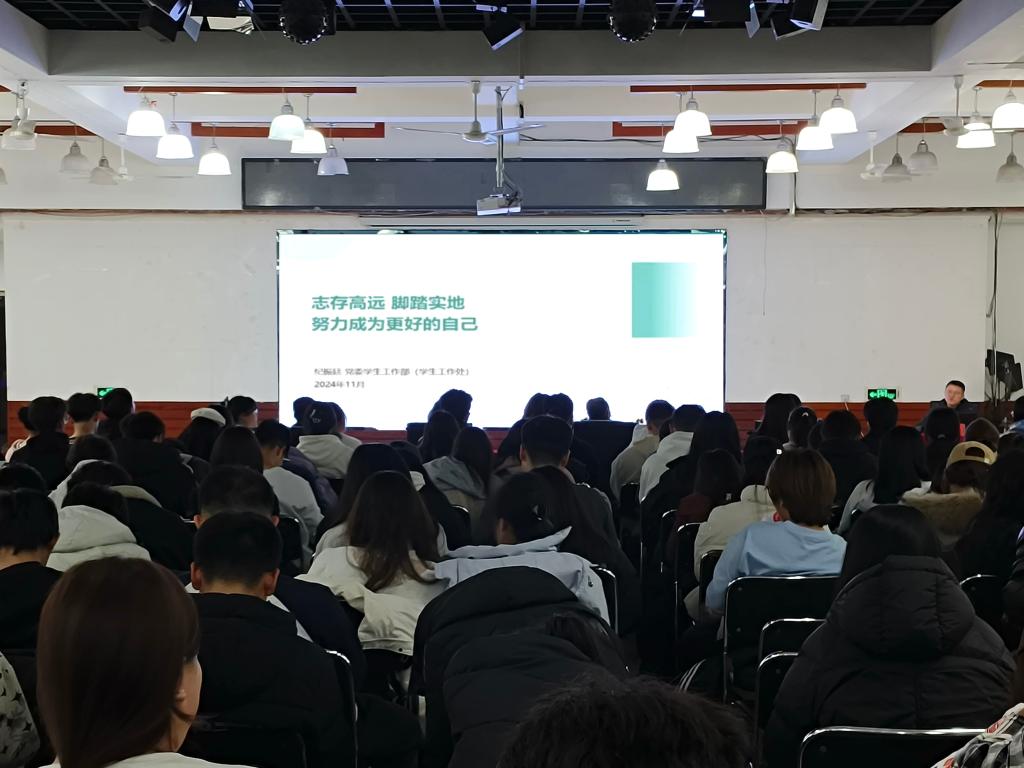 11月20日,经法学院邀请校党委学生工作部(处)部(处)长纪振廷于明德楼大学生活动中心,为2024级本科生做题为“志存高远,脚踏实地,努力成为更好的自己”主题讲座。本次讲座由经法学院党委副书记张国华主持,学院学办主任齐艳萍、团委副书记张鹏飞、班主任代表李俊及2024级全体本科生参加。