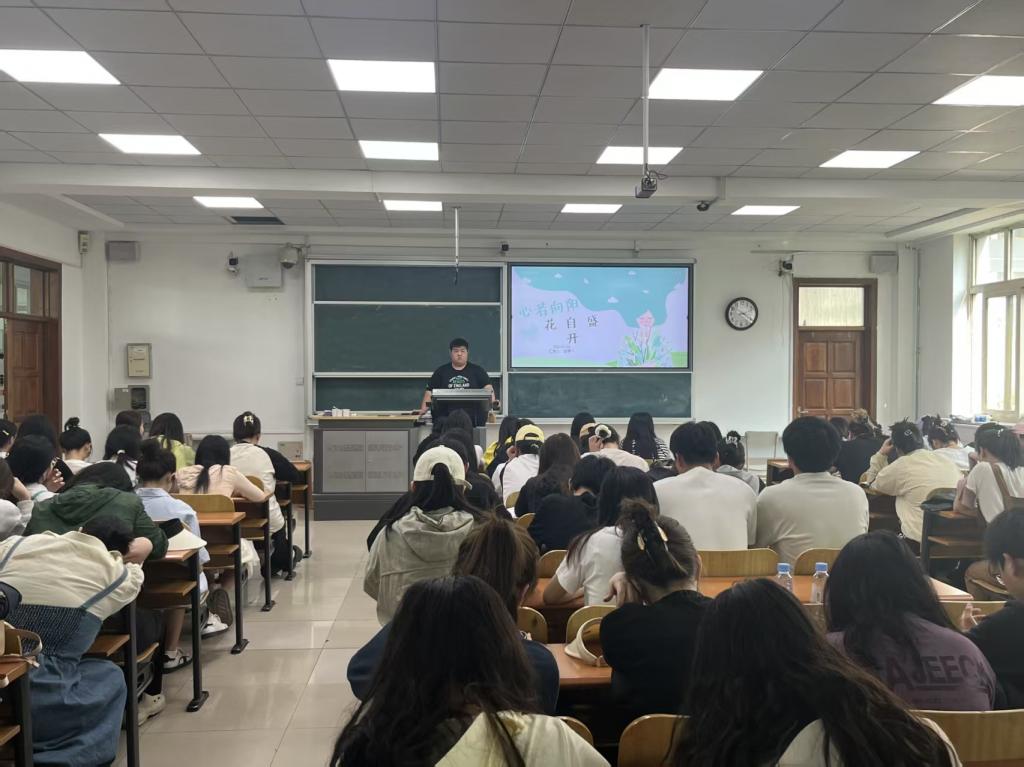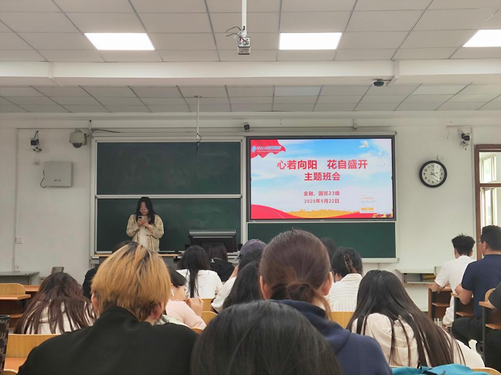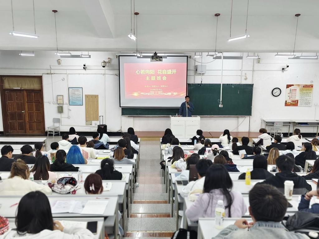 在“心若向阳,花自盛开”心理健康教育主题班会上,辅导员围绕学生在现实生活中遇到的一系列“难题”与大家展开讨论,并在互动中普及心理健康知识。辅导员鼓励同学们树立正确的心理健康观念,提升心理素质,以积极的心态迎接生活挑战。
