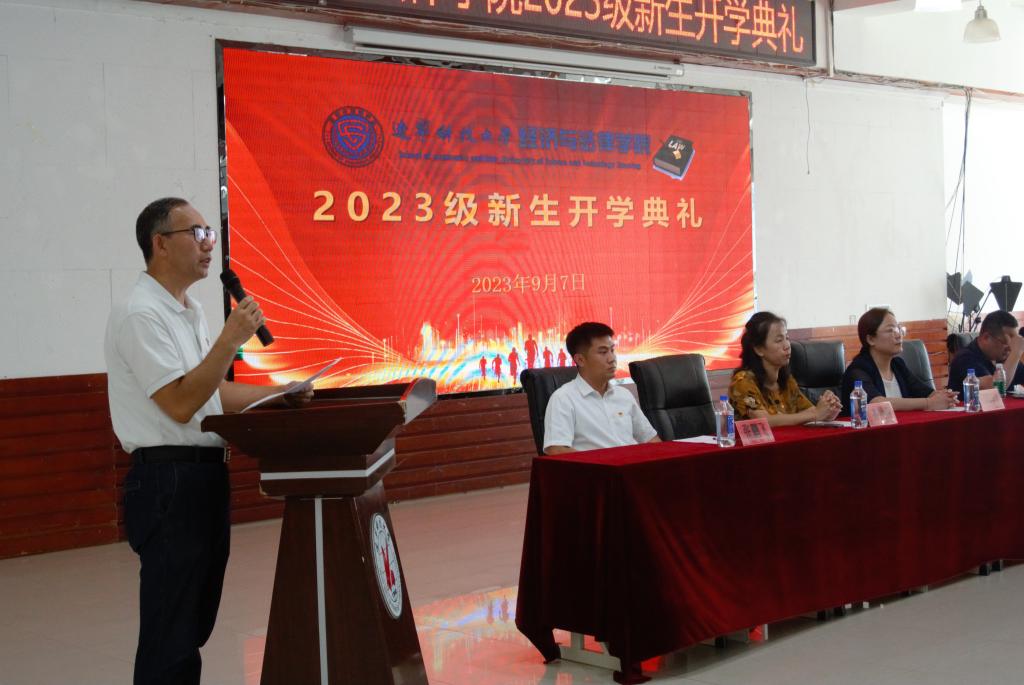 9月7日,经济与法律学院于明德楼大学生活动中心隆重举办2023级本科新生开学典礼。典礼由学院党委副书记张国华主持,学院领导班子全体成员、辅导员、教师代表及2023级260名本科生参加了典礼。