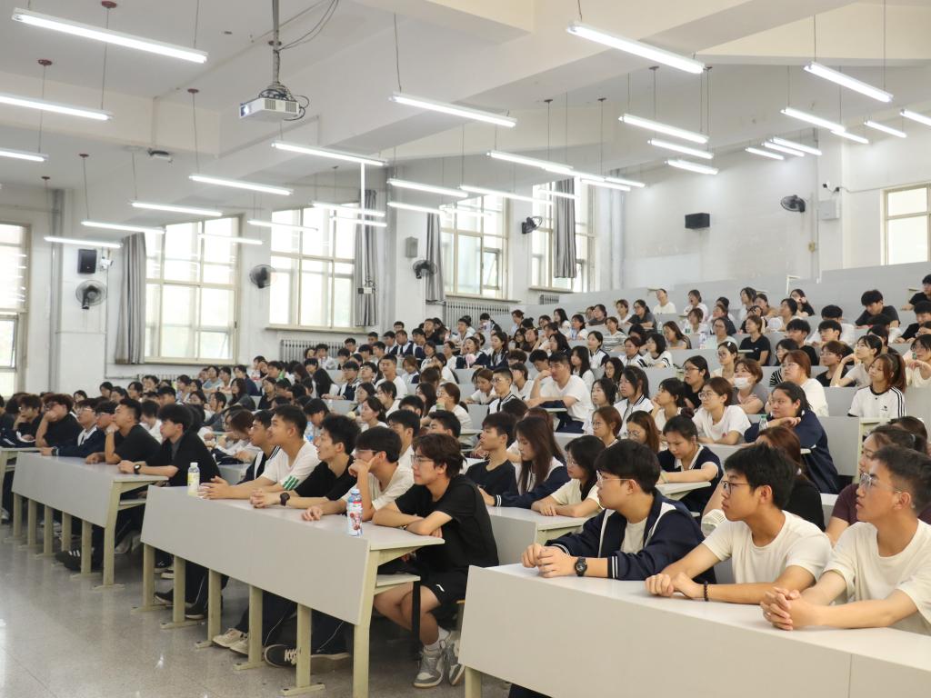 学院领导班子成员结合分管工作,为新生送上“成长指南”:学院党委书记赵智博系统讲解党的性质宗旨、入党流程与标准,鼓励新生树立远大理想,积极向党组织靠拢,在思想淬炼与实践锻炼中成长为堪当民族复兴大任的时代新人;党委副书记张国华聚焦“涵养优良学风,筑牢学业根基”,从大学学习特点、专业发展方向、学风建设要求等方面展开,通过分享优秀学长学姐的学习经验,引导新生养成自主学习、勤于思考的习惯,营造“比学赶超”的良好学习氛围;学办主任李路云围绕校园规章制度,详细解读教学管理、考勤考核、寝室管理、奖惩办法等内容,结合具体案例强调遵守规则的重要性,引导新生树立规则意识,规范日常行为;学院团委书记张鹏飞以“以青春之名 赴时代之约”为核心,介绍团的组织架构、品牌活动与实践平台,鼓励新生积极参与志愿服务、学科竞赛、文化活动等,在丰富的团活动中提升综合素养、拓展成长空间。