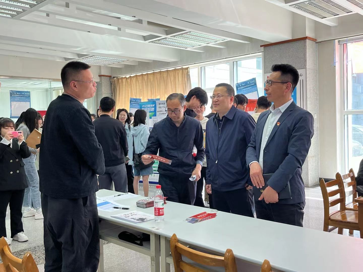 为了促进学生就业,5月9日,由经法学院与管理学院联合举办的“一‘面’倾心,‘职’击未来”2023届经管类毕业生专场双选招聘会于大学生就业创业指导服务中心举行。