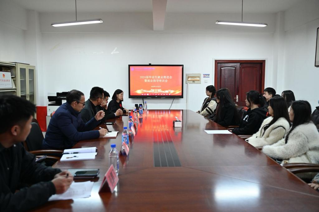 3月22日上午,经法学院于博识楼A305召开2024届毕业生就业工作推进会暨就业指导培训会。学院党委书记赵智博、党委副书记张国华、学办主任齐艳萍、团委副书记张鹏飞参加会议,会议邀请创新创业学院教研室主任刘丽、招生就业处就业指导中心副主任魏扬昊担任主讲人,学院未落实就业去向的毕业生参加了本次培训。