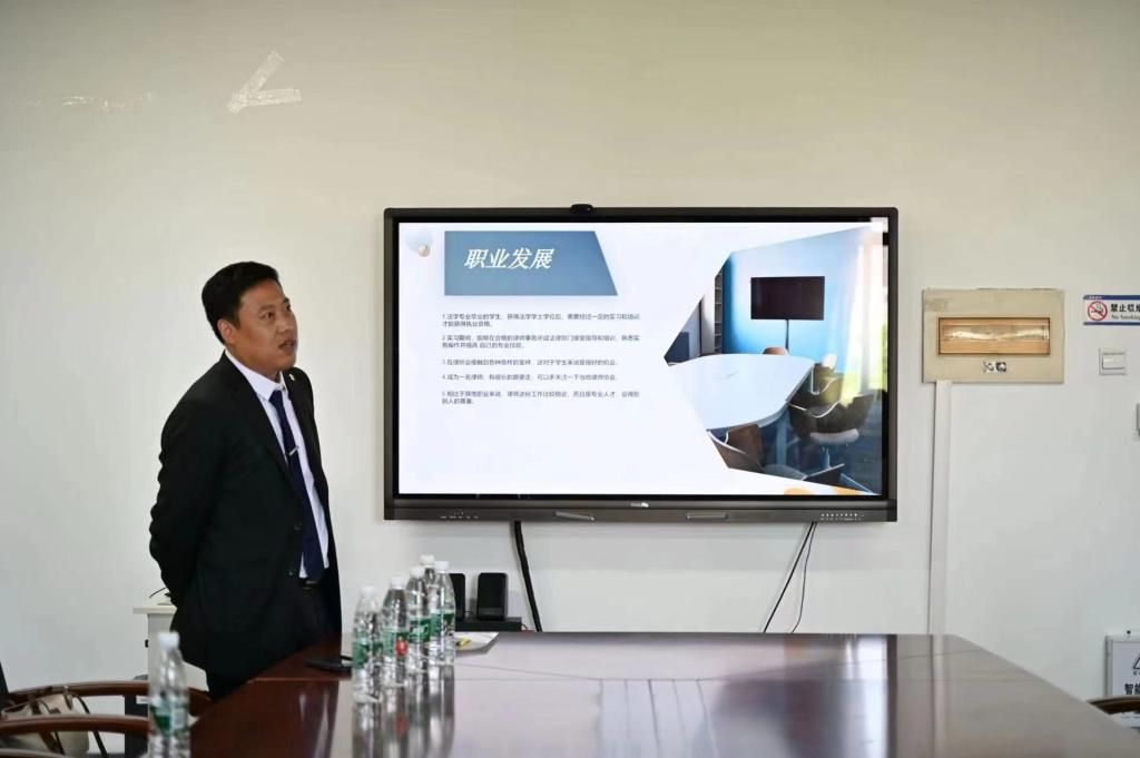 宣讲会伊始,张鹏飞首先对辽宁仁远律师事务所的到来表示了热烈欢迎,并鼓励在座学子把握住此次机会,增强就业意识,深入了解当前的就业形势,积极主动求职。会上,辽宁仁远律师事务所法定代表人刘言君就事务所的基本情况、发展规模以及职业发展路径等进行了详细的介绍,使同学们对律师行业及该律所的具体情况有了更为清晰的了解。同时,他结合自身经验,为同学们提供了诸多宝贵建议。他讲道,在择业过程中,同学们应充分考虑自身的兴趣和性格特点,积极利用课余时间参与实习,探索适合自己的职业方向,并鼓励同学们努力提升个人专业素养和法律技能,拓宽视野,为未来的职业生涯打下坚实基础。在互动环节中,同学们积极提问,辽宁仁远律师事务所的负责人给予了耐心细致的解答,现场气氛热烈而融洽。同学们纷纷表示将珍惜此次机会,勇于尝试,为未来就业做好充分准备。会后,部分同学向辽宁仁远律师事务所投递简历,并与在场的律师进行了深入的交流。