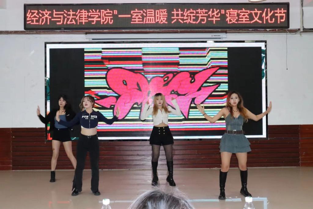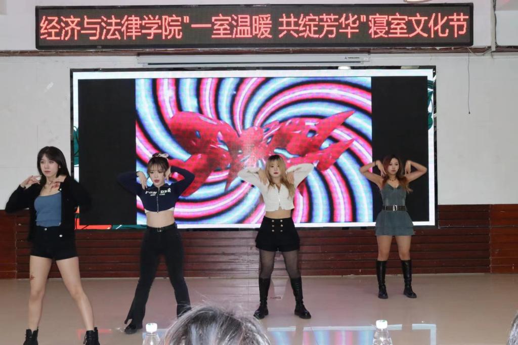 活动中,Vshow舞团开场的精彩表演点燃了观众的热情,现场气氛瞬间升温,活动正式拉开序幕。本次寝室文化节共分为“寝室vlog大赛”“才艺大赛”和“叠被子大赛”三个环节。随着全场热烈的掌声,“寝室vlog大赛”将各参赛寝室成员们精彩纷呈的寝室生活呈现在观众眼前。选手们通过照片、视频、采访等各种各样的形式记录了寝室成员之间的点点滴滴,展现了寝室生活的温馨日常以及各寝室成员们独特的闪光点。“才艺大赛”上,选手们各显神通,给观众带来了一场视听盛宴。小品《勇闯301》以诙谐的剧情、滑稽的动作让现场笑声不断;歌曲《年轮》、诗朗诵《面朝大海,春暖花开》、舞蹈串烧等表演以充沛饱满的情感诠释了经法学子们积极向上、意气飞扬的寝室风采,体现了寝室成员们热情奔放的精神面貌,赢得了在场老师和同学们的阵阵掌声。修明武术协会和金融21班秦煜宁的串场表演以及“抱团游戏”将气氛再次推向高潮,现场欢呼喝彩声不断。“叠被子大赛”环节中,随着主持人一声令下,参赛同学迅速进入状态,即便两位主持人不断提问干扰,选手们依然细致认真地整理被子,现场气氛热烈,欢呼不断。两分钟后,一块块棱角分明的“豆腐块"展现在观众面前,赢得了观众的热烈掌声。由韦敏玲、何运来、周思彤为大家带来的舞蹈串烧,表演精彩绝伦,令人印象深刻。