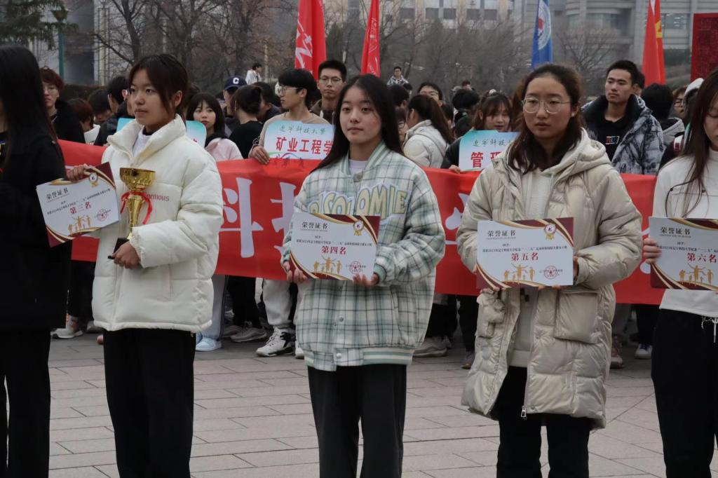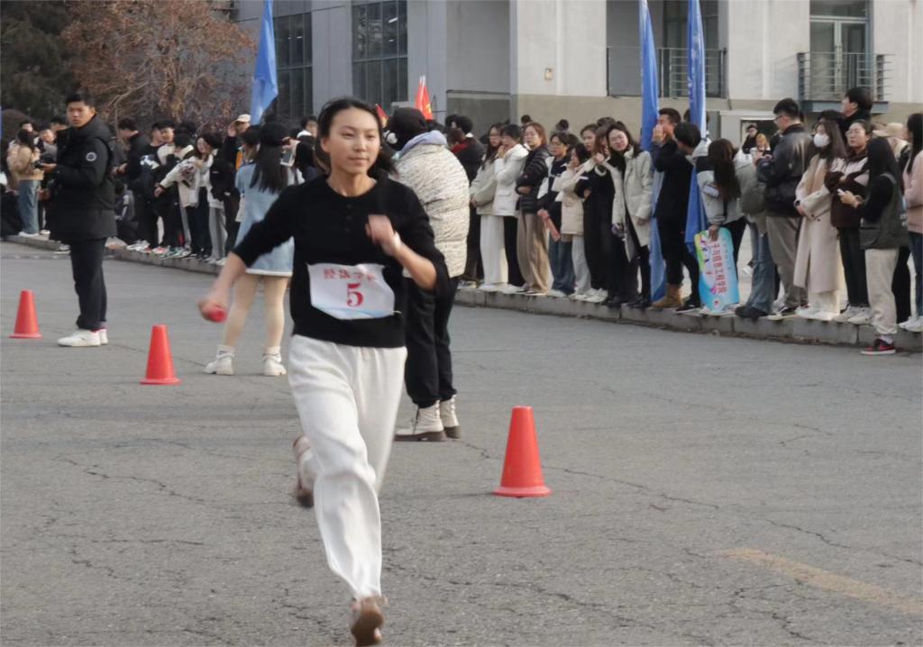 本次比赛分为男女两个组别,各学院派出男女各10名运动员参赛,以接力的形式进行比赛。13:30分,比赛准时开始,随着一声枪响,准备充分的经法运动员如离弦之箭,冲出起跑线。冬日天气虽冷,却挡不住运动员们如火一般的拼搏热情,他们在赛道上不畏严寒,全力奔跑。来自经法啦啦队同学们的欢呼声、呐喊声、加油声,声声震耳,此起彼伏,激励着每一名勇士冲向终点。运动员们在无数的期待和呐喊中奋力向前,英姿飒爽,充满活力。时间在流逝,赛道在延伸,多日训练的努力在此刻回报给追风少年们以加速的力量,汗水在阳光的照耀下熠熠生辉。据悉,此次比赛在学院领导的高度重视下,学院学生会体育部认真负责地组织策划、选拔队员,带领20名参赛队员进行了科学训练,学院团委、学生会各成员在比赛期间做好了各项后勤保障工作。学院党委书记、副书记和团委书记时刻关注同学们的训练情况,为了给同学们加油鼓劲,曾与同学们在体育场上一同训练。在每一个人的倾情付出下,经法学院的队员们再次创造历史,取得近几年来学院在该项赛事上的最好成绩。