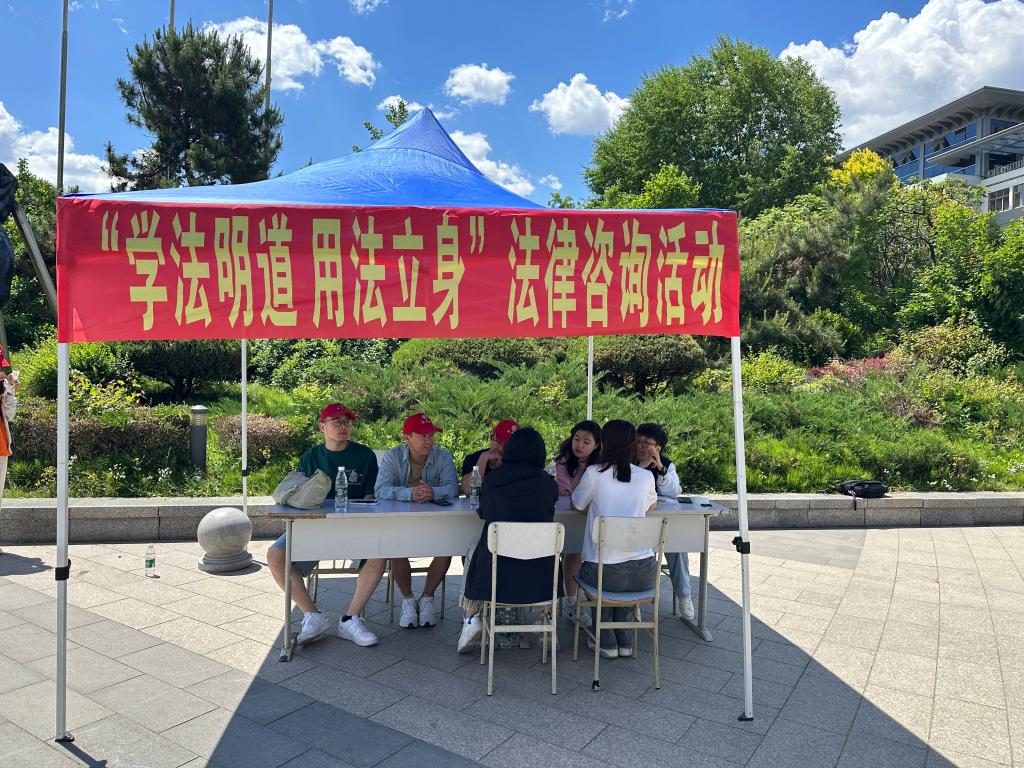 为提升同学们依法办事、依法维权的能力,增强同学们的法律意识和法治观念,5月15日,经法学院于博雅广场组织开展了“学法明道 用法立身”法律咨询活动。学院党委副书记张国华、团委副书记张鹏飞以及9名法律硕士研究生“小红帽”志愿者共同参加了本次活动。