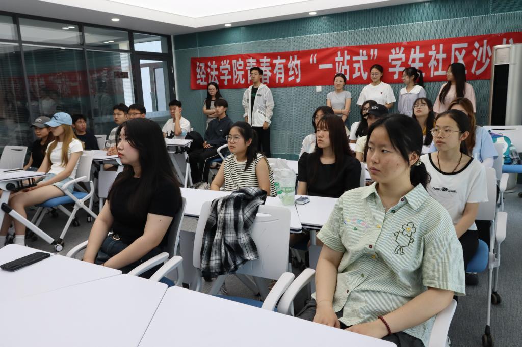 6月17日,经法学院于“一站式”学生社区305多功能活动室开展“携手并进,决胜期末”主题交流分享会。本次活动由学院学生会生活权益部干事王乔诗主持,活动邀请了国贸22-2赵心豪、金融22-1申博轩作经验分享,2023级共计20名学生参加。