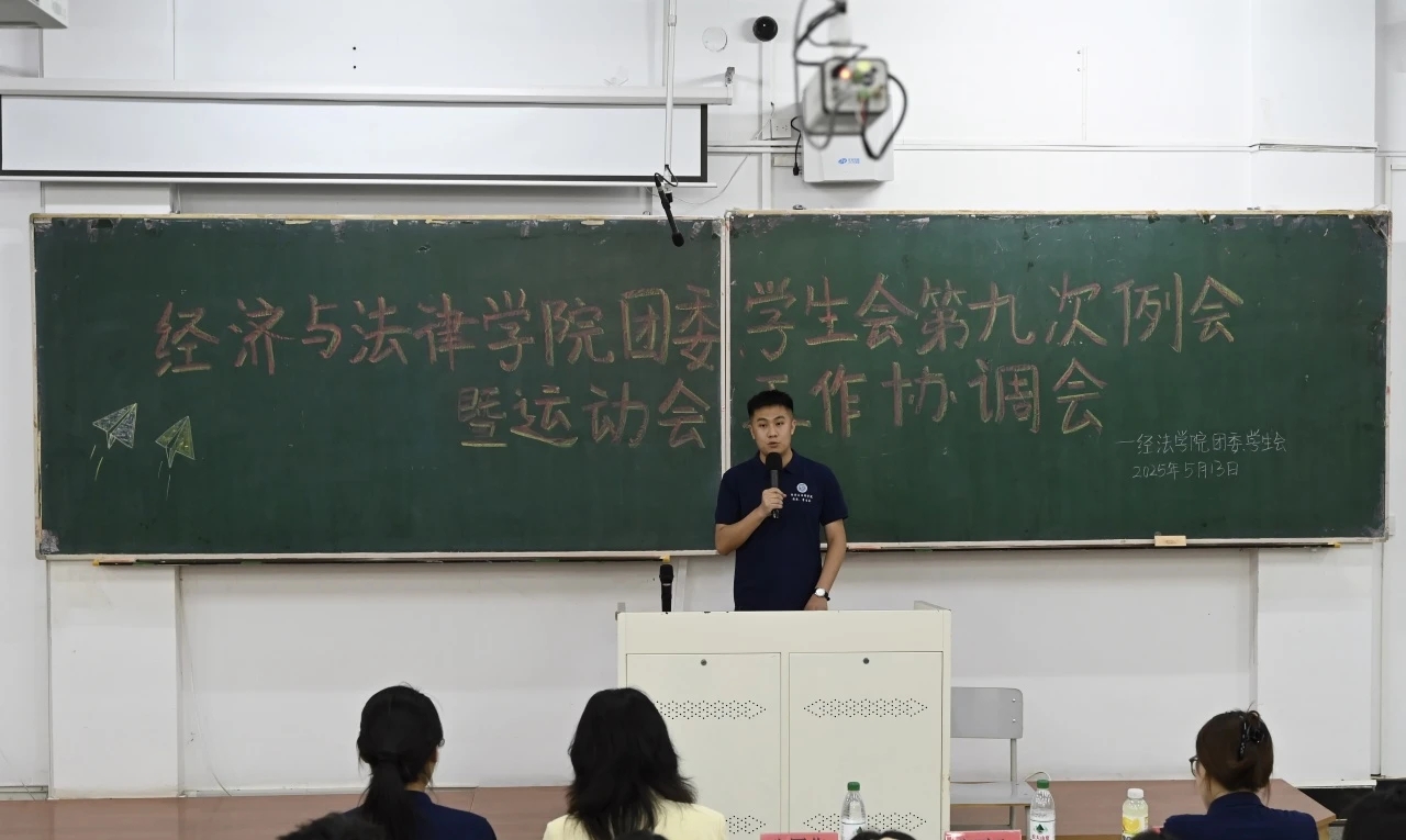 5月13日,经法学院团委、学生会第九次例会暨运动会工作协调会于博学楼C102顺利召开。本次会议由学院团委副书记张鹏飞主持,学院学办主任齐艳萍出席会议、全体团学骨干以及运动员共计240余人参加会议。