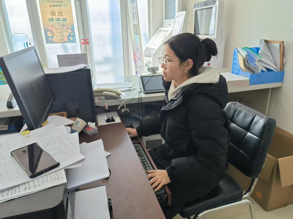 董文甜,女,共青团员,金融科技22-1班学生。寒假期间她积极投身家乡“桑梓计划”大学生专题“返家乡”社会实践,在南董镇人民政府进行了为期一个月的志愿服务。