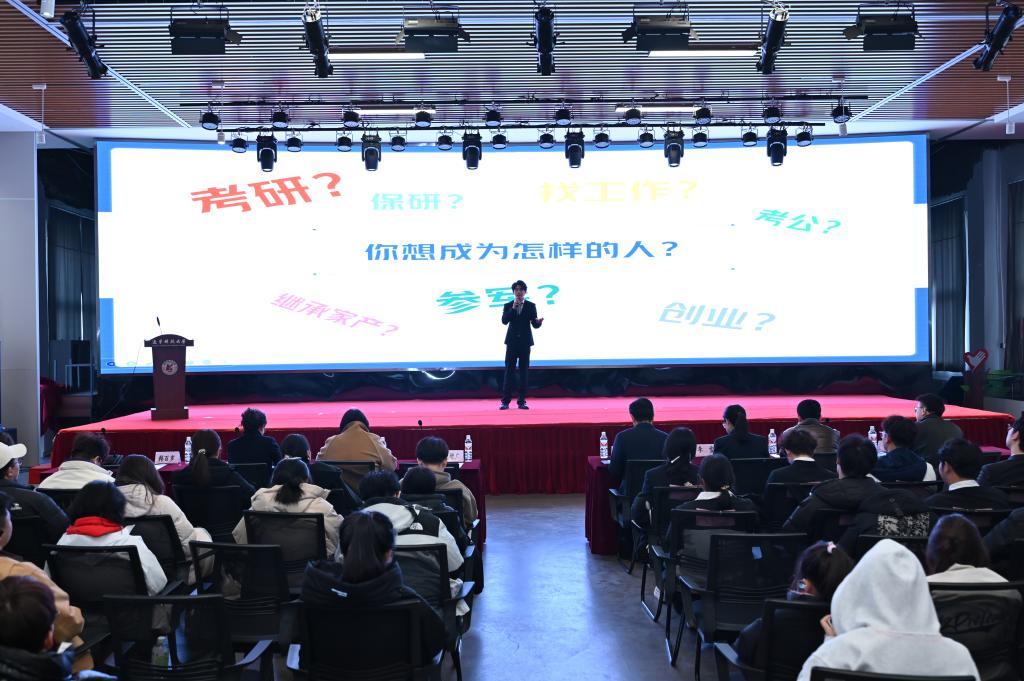 赛程结束后,往届优秀学生代表王宇受邀分享了学业规划心得。他结合自身经历,从如何依据自身兴趣和优势设定清晰可行的学业目标,到分享实用的时间管理技巧,合理分配学习、社团活动与自我提升的时间,再到讲述自己在大学期间如何积极参与实习、行业交流,探索职业方向,观点紧密贴合学生的实际需求,为同学们科学合理地制定学业规划提供了清晰的指引。