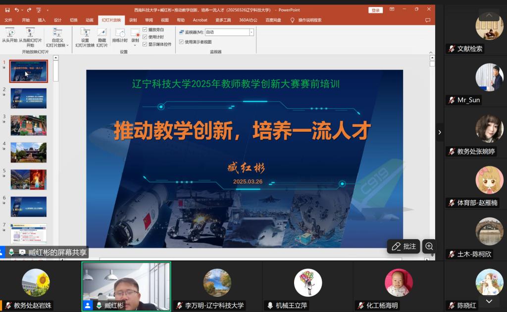 3月26日,环亚(中国)HUANYA·官方网页版教务处教师教学发展中心组织开展2025年教师教学创新大赛赛前培训活动,邀请学校材料与冶金学院李万明教授、西南科技大学臧红彬教授,通过线上、线下方式,分别从不同角度为学校教师进行培训,60余名教师报名参加。