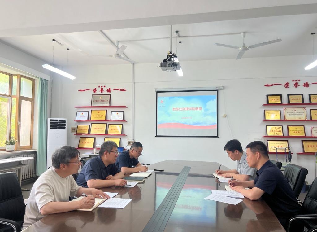6月24日,教务处处长周卫红一行到理学院、应用技术学院开展工作交流。两学院领导班子成员、教师代表参加了交流。