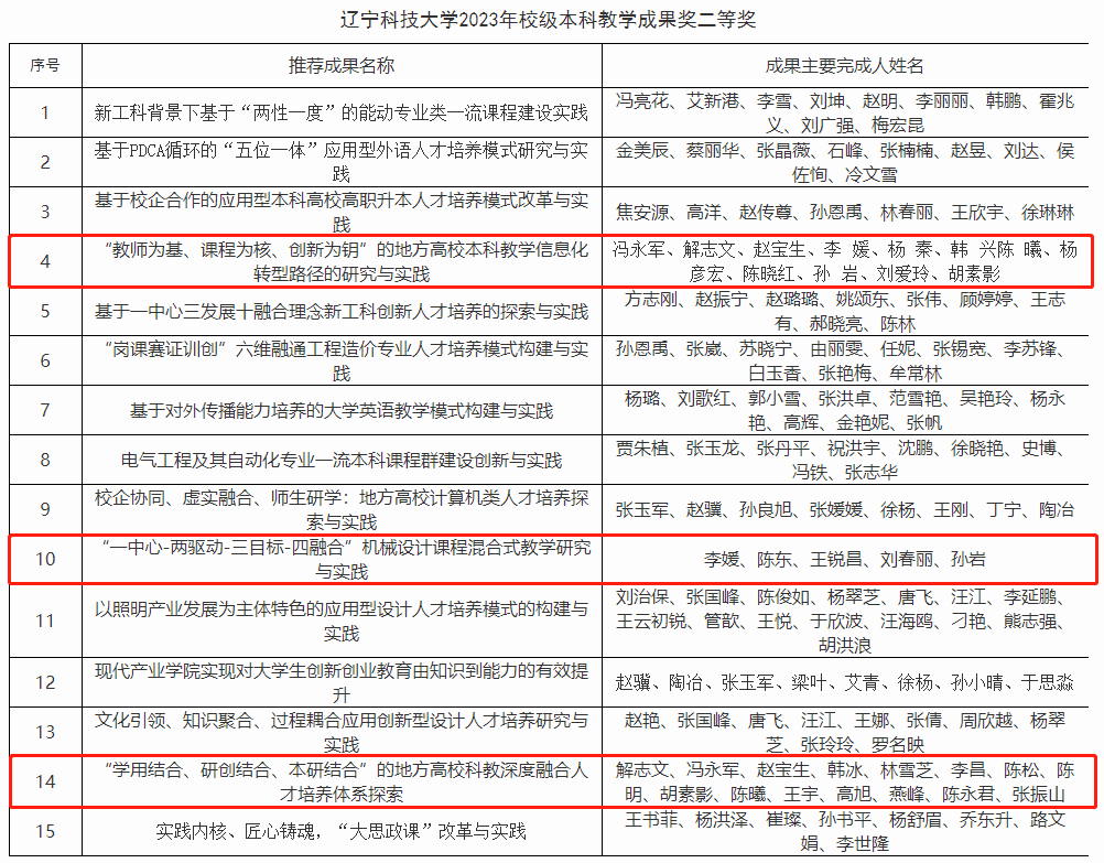 7月13日,环亚(中国)HUANYA·官方网页版发布了关于2023年校级本科教学成果奖的获奖通知,此次评审根据《关于开展2023年校级本科教学成果奖评选工作的通知》(环亚(中国)HUANYA·官方网页版教发〔2023〕70号)相关安排,经成果建设团队申报、学院推荐,学校组织专家综合评审,评选出2023年校级本科教学成果奖共42项,包括一等奖10项,二等奖15项,三等奖17项,我院有4个教学团队获奖。其中王立萍老师负责的团队荣获一等奖,冯永军、李媛、解志文老师负责的团队荣获二等奖。