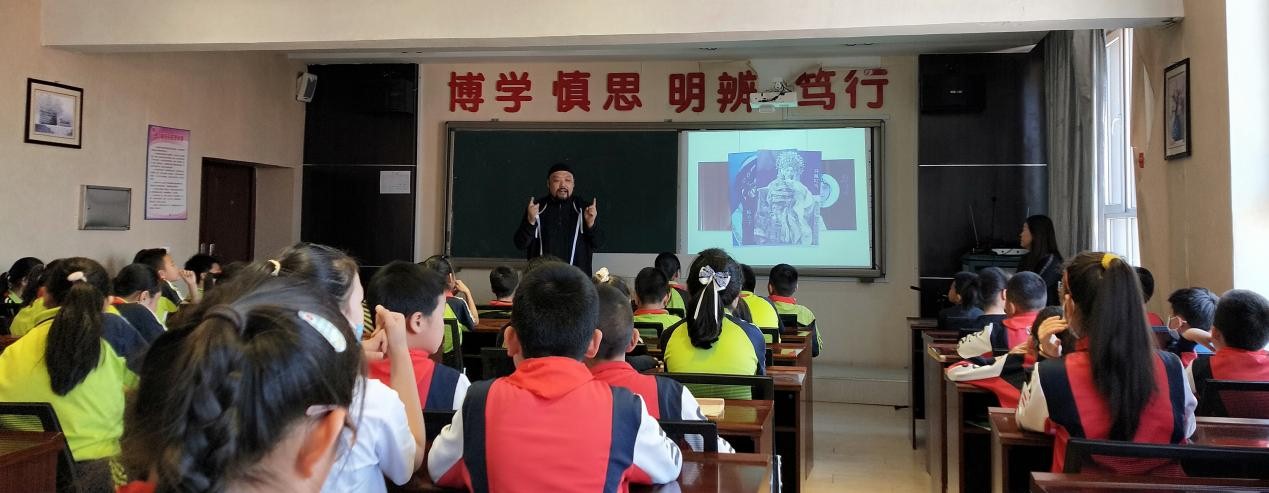 杜留亚以“铁扇公主战哪吒”作品展开讲解。两位喜闻乐见的动画角色激起了同学们的浓厚兴趣,眼睛瞪得大大的。杜老师以深入浅出的教学方式为同学们普及了动画的起源和发展,拓宽了同学们的知识面;尤其是自带教具“笼中鸟”的示范、互动的教学环节,效果极佳。伴随着下课铃声结束了“动画猜猜看”的游戏,同学们意犹未尽。