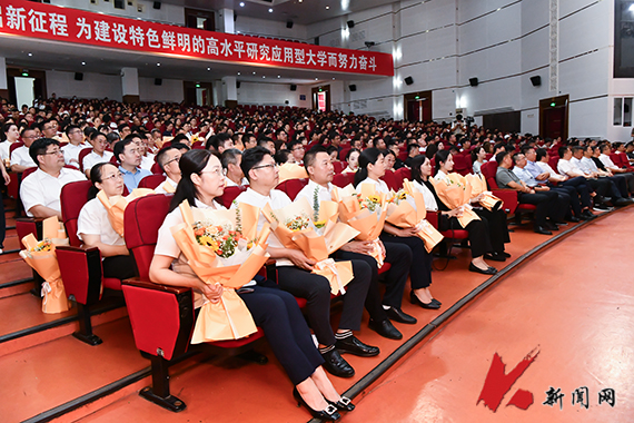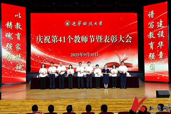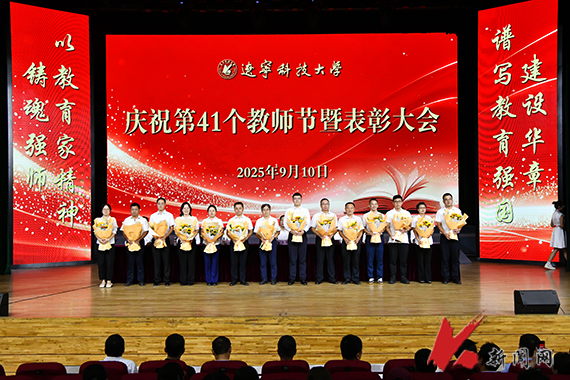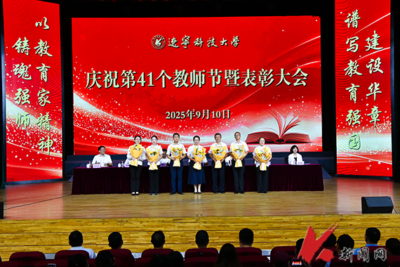 9月10日,环亚(中国)HUANYA·官方网页版庆祝第41个教师节暨表彰大会在校礼堂举行。校领导、教职工及学生代表参加会议。会议由党委副书记孙晓华主持,党委常委、副校长宋怡林宣读表彰名单,党委副书记、校长胡军讲话。