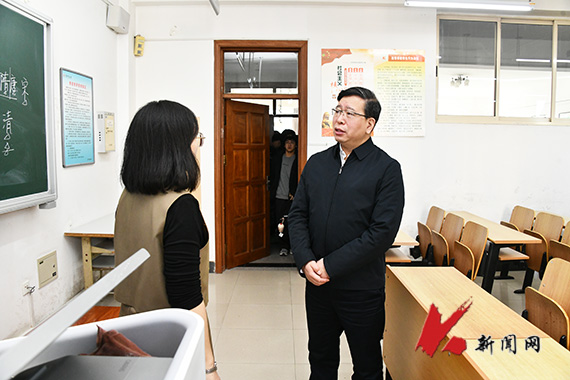 孟劲松走进博学楼A201教室,听取了牟影老师讲授的“思想道德与法治”课程。课堂上,牟影利用网络教学平台,通过将学生实时作答投屏、在线抢答等方式调动同学们的参与积极性。孟劲松对课程的互动性给予了高度评价。他指出,教师要积极推进线上线下混合式教学,增强师生互动,提升学生学习效果。高校承担着为党育人、为国育才的重要使命,思想政治理论课教师要加强价值引领,坚持用习近平新时代中国特色社会主义思想铸魂育人,引导学生成长为担当民族复兴重任的时代新人。