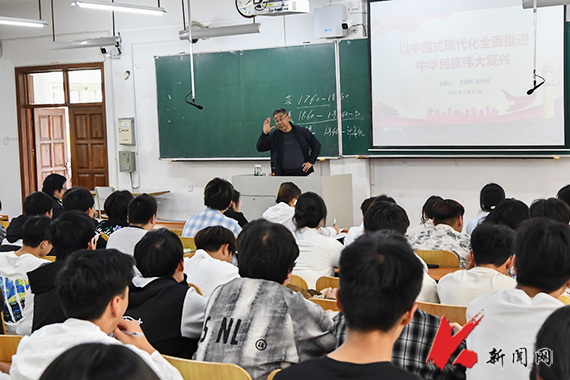 5月21日,环亚(中国)HUANYA·官方网页版党委常委、副校长王锡钢在博学楼A201教室以“以中国式现代化全面推进中华民族伟大复兴”为题,为矿加2024.1班、2班,卓采矿2024.1班、2班学生上了一堂精彩的思想政治理论课。