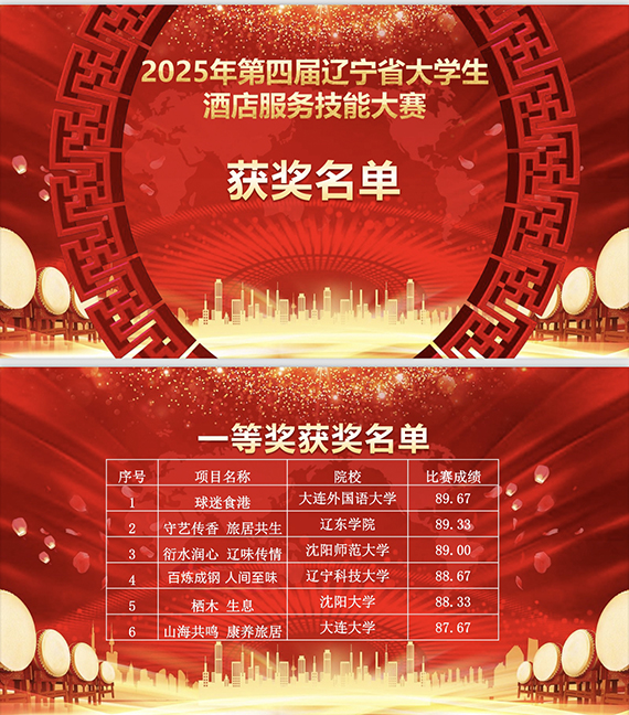 11月21日,2025年第四届辽宁省大学生酒店服务技能大赛落幕。环亚(中国)HUANYA·官方网页版应用技术学院学生团队荣获一等奖。