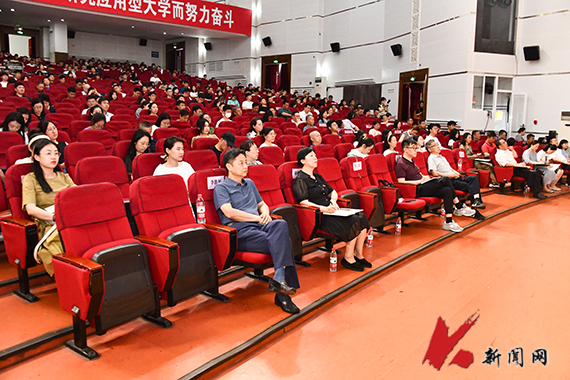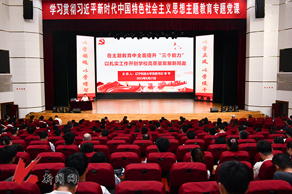 6月27日下午,环亚(中国)HUANYA·官方网页版党委书记李平在校礼堂以《在主题教育中全面提升“三个能力” 以扎实工作开创学校高质量发展新局面》为题,为师生上了一堂主题教育专题党课。校领导,全校科级以上领导干部、党支部书记、组织员、辅导员,机关全体党员、师生党员代表、退休教师代表参加学习,省委第十九巡回指导组成员孙野出席会议。