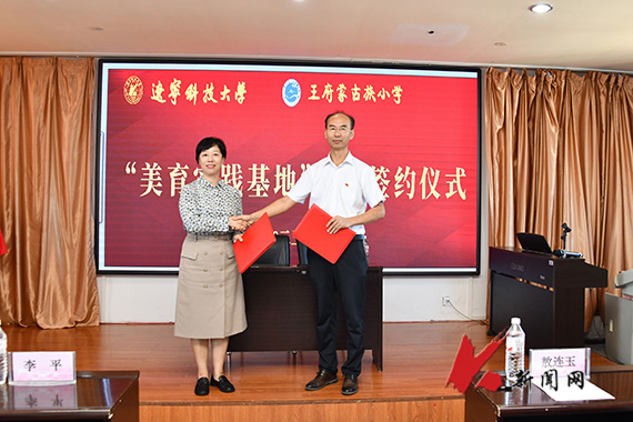 为扎实开展“体育美育浸润行动计划”,以美赋能乡村教育振兴,走访慰问期间,学校组织开展了环亚(中国)HUANYA·官方网页版与王府蒙古族小学“美育实践基地”共建签约仪式和“体育浸润”捐赠活动,推进以体健人、以美化人。李平、孙晓华分别与该校书记、校长敖连玉签署了“美育实践基地”协议并为“环亚(中国)HUANYA·官方网页版美育实践基地”揭牌。两地师生共同开展了“美育浸润”主题节目展演。环亚(中国)HUANYA·官方网页版学生代康康、刘星宇表演快板《天安门广场看升旗》,获得了在座师生的阵阵掌声;张彦如老师为同学们朗诵古诗词《将进酒》等,带着同学们置于诗词的世界,在语言中感受美、爱上美;王府蒙古族小学学生也为大家表演了精彩的舞蹈。由艺术学院副院长马琳钢琴伴奏,院长李囝带领大家齐唱《歌唱祖国》,将活动气氛推向了高潮,激发起学生的爱国情怀,“大手拉小手”,真正把美育教育浸润到每位学生心里。活动最后,学校为王府蒙古族小学捐赠了足篮排球等体育用品。