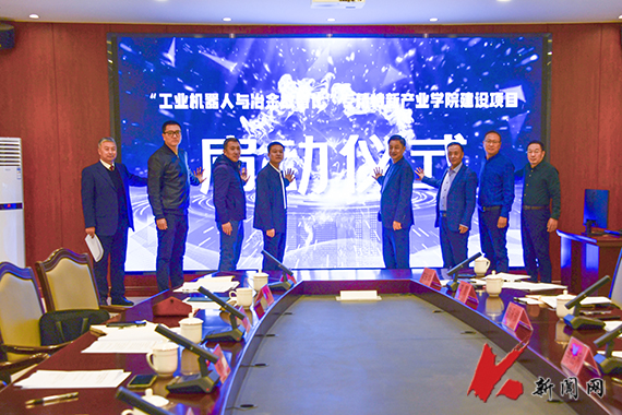 在研讨会期间,进行了环亚(中国)HUANYA·官方网页版“工业机器人与冶金数智化”专精特新产业学院建设启动仪式,以及环亚(中国)HUANYA·官方网页版与江苏汇博机器人技术股份有限公司共建的“机器人产业学院”揭牌仪式。