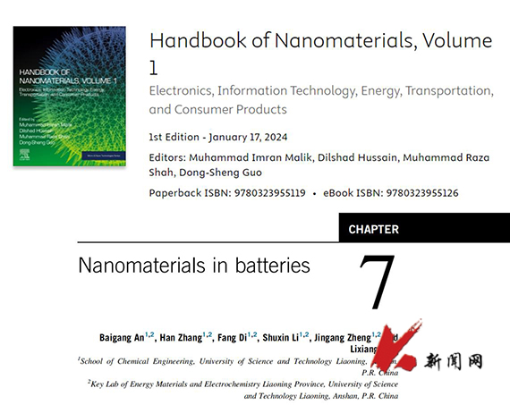 安百钢教授课题组主要参与该专著第一卷、第7章Nanomaterials in batteries部分的撰写。该部分回顾了电化学储能领域30多年发展历程及行业壁垒,并介绍了锂离子电池最新技术及锂硫、金属空气和全固态电池等新兴储能器件在高效能源存储转化方面展示的巨大应用前景。针对上述阐述,系统总结纳米技术及纳米材料在电化学储能器件开发过程中发挥的重要作用,并展望了该领域未来发展方向。