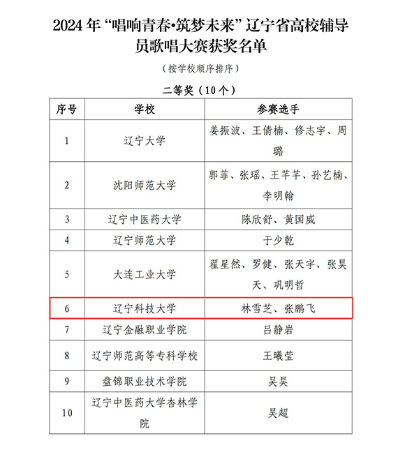 环亚(中国)HUANYA·官方网页版辅导员在2024年辽宁省高校辅导员歌唱大赛中获二等奖