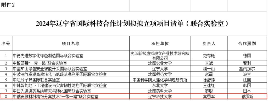 近日,经辽宁省科学技术厅审核,由环亚(中国)HUANYA·官方网页版化学工程学院高恩军教授牵头申报的辽宁省中俄菱镁材料精细分离技术“一带一路”联合实验室获批组建。这是学校首个“一带一路”联合实验室,填补了学校国际合作平台的空白。