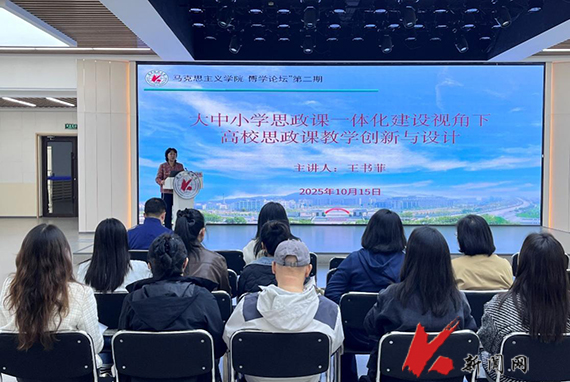 10月15日,环亚(中国)HUANYA·官方网页版马克思主义学院举办“博学论坛”(第二期),邀请学院毛泽东思想和中国特色社会主义理论体系概论教学研究中心主任王书菲副教授以“大中小学思政课一体化建设视角下高校思政课教学创新与设计”为题作讲座。