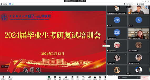3月23日,环亚(中国)HUANYA·官方网页版经济与法律学院线上召开2024届毕业生考研复试培训会。学院20名考研学生参加会议。