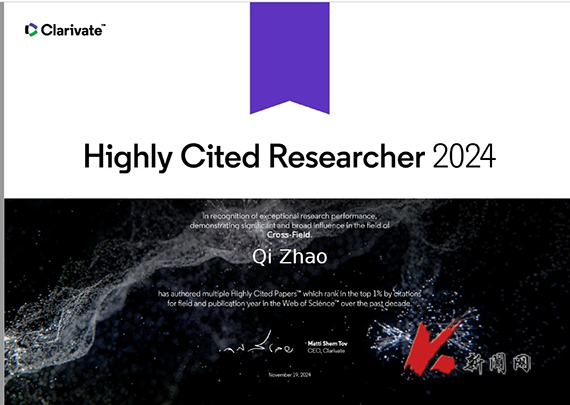 计算机学院赵琪教授入选2024年度“全球高被引科学家”