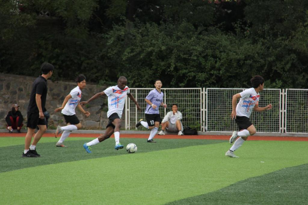 小组赛第二场比赛国际教育学院对阵材冶学院,材冶学院是非常强大的队伍,所以在赛前战术安排采用防守反击策略,虽然进攻的次数以及质量稍差,但在后防线以及守门员许多的精彩扑救下,国际教育学院战平材冶学院。得到了小组赛第一分。