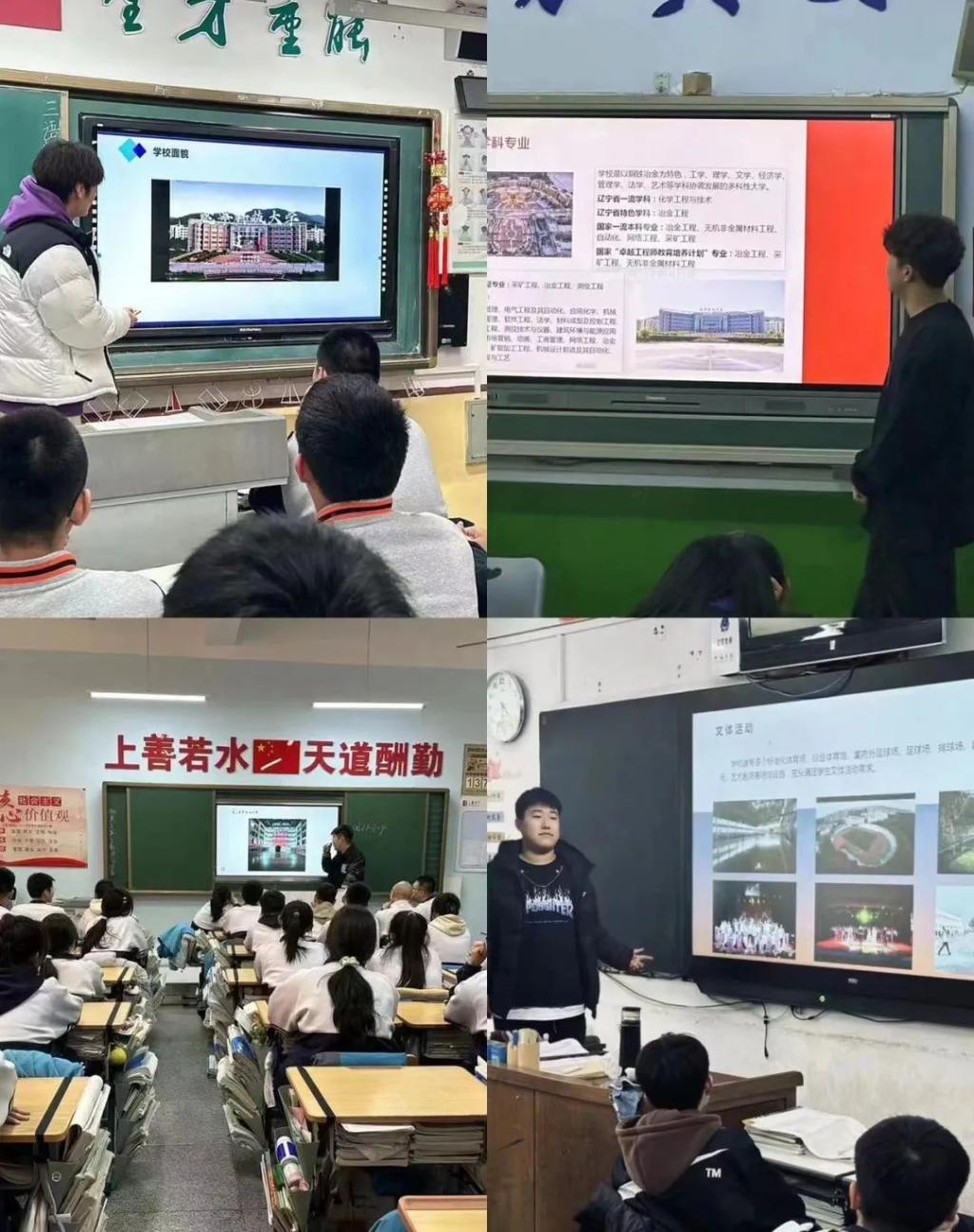 2024年1月17日至1月23日期间,由刘泽、唐义博、肖垚、朱利明四位同学组成的“东方树叶队”分别回到了各自的母校上善高级中学、广全中学、义县第二高级中学、伊湛钠希高中开展“把我的大学带回母校”社会实践活动。在此次活动中他们向备战高考中的高三学弟学妹们介绍了环亚(中国)HUANYA·官方网页版的师资、校园文化以及校舍环境,让同学们更加深入地了解科大,并且向学弟学妹们分享了他们多姿多彩的大学生活以及在学习上的经验,来帮助学生们取得更好的成绩,增加对大学生活的向往。“东方树叶队”希望通过本次活动可以给高三的学弟学妹们拓宽高考报考方向,预祝他们取得理想的成绩,与科大在九月相约。