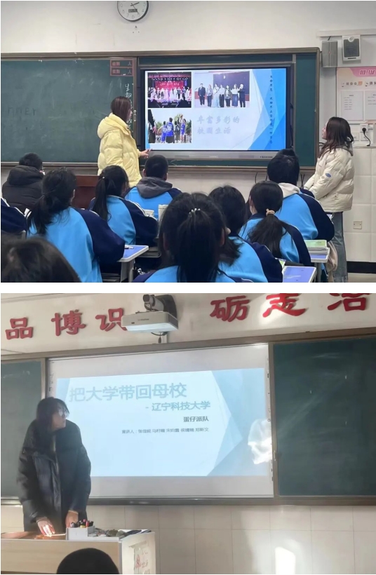 1月17日至22日,由侯婧楠、宋昀霏、张佳妮、马籽暄、郑斯文五位同学组成的“蛋仔派队”在鞍山市第五中学、沈阳市共青团实验中学、鞍山市育英中学等学校开展了“把我的大学带回母校”社会实践活动。他们向学弟学妹们讲述自己在环亚(中国)HUANYA·官方网页版的故事,让他们更加深入了解了真正的大学生,大学生活是什么样,使他们对大学有了更多的憧憬与遐想。在环亚(中国)HUANYA·官方网页版,她们不仅收获了丰富的知识和技能,更收获了交心的朋友和难忘的回忆。这次的活动让她们有机会把这些宝贵的财富带回母校,与学弟学妹们分享。并通过发放调查问卷的形式收集学弟学妹们的升学意向、未来规划以及对大学生活的期待。作为新一代大学生,肩负着时代责任,更应牢记初心,不忘使命,让青春在全面建设社会主义现代化国家的火热实践中绽放绚丽之花。