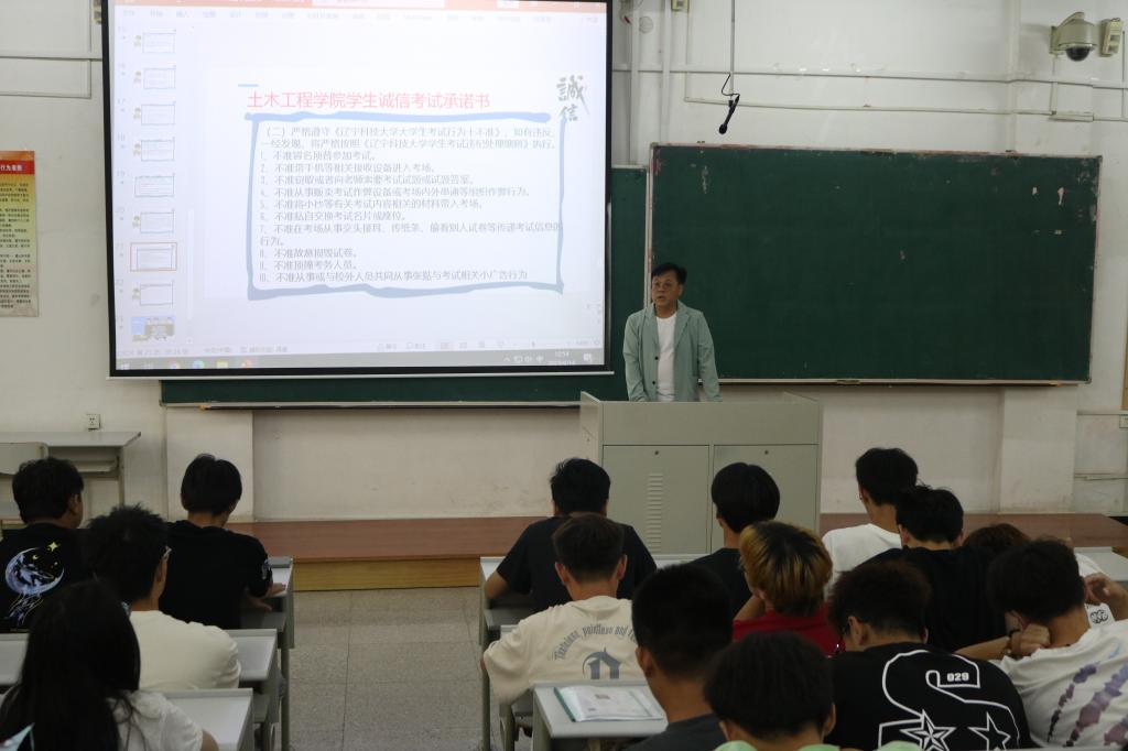 为营造公平、公正、诚实、守信的考试环境,严肃考风考纪,土木工程学院于6月13日、14日分别在博学楼A404、A201教室召开诚信考试动员大会。学院2020级、2021级、2022级全体学生参加会议。