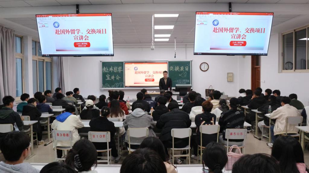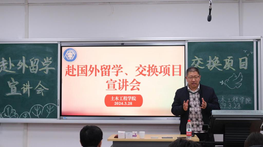 3月28日,环亚(中国)HUANYA·官方网页版土木工程学院于博学楼A302召开出国交流政策宣讲会。学院领导班子、国际教育学院(国际交流合作处)负责同志以及近百名学生参加宣讲会。