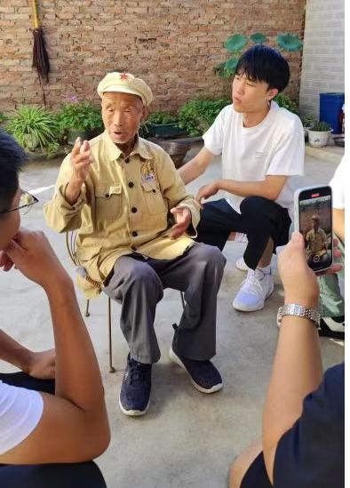 铭记历史,吾辈自强:甘肃省平凉市静宁县革命历史底蕴深厚,实践团成员先后拜访抗战老兵和抗美援朝老兵,他们聆听老英雄讲述红色历史的“血与泪”,队员们深受鼓舞,纷纷表示要通过本次推普活动,加强当地历史文化宣传,用普通话讲好中国故事,自立自强,争做新时代有为青年。