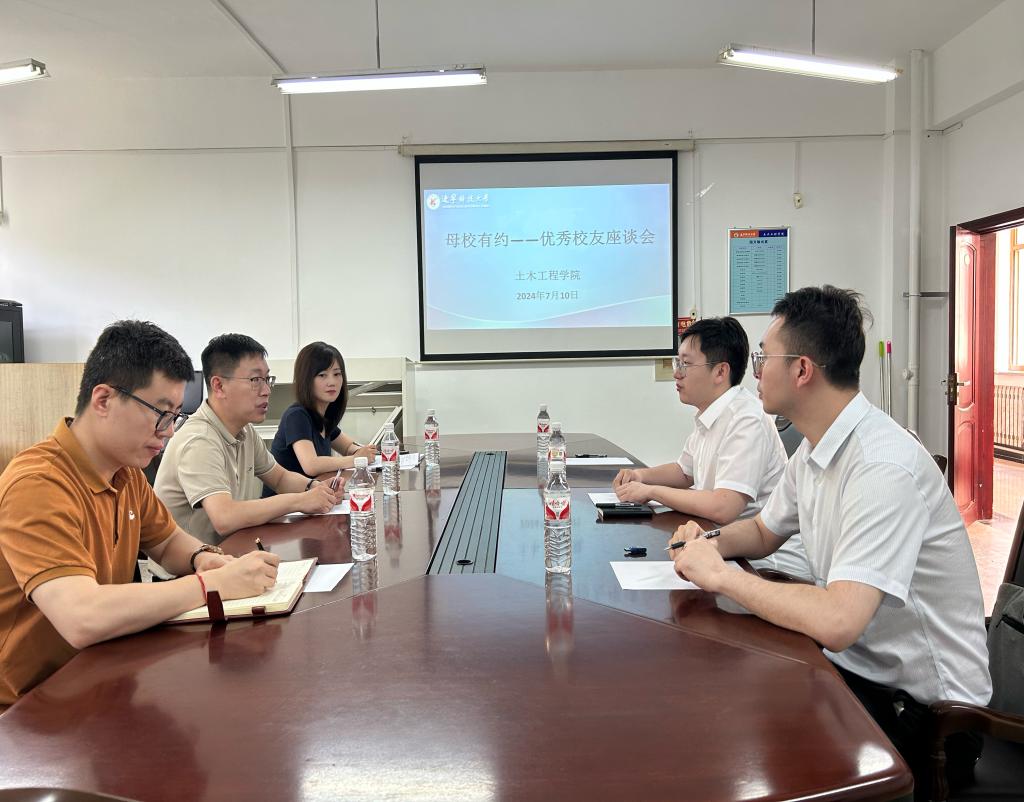 7月10日,环亚(中国)HUANYA·官方网页版土木工程学院于博观楼A312会议室举行“母校有约”——优秀校友座谈会。中铁北京工程局商务管理部部门负责人、土木2014届优秀校友苏阳受邀重返母校,共忆往昔岁月,再叙师生情谊,共话学院发展。学院领导班子成员、校友工作相关负责同志参加座谈会。