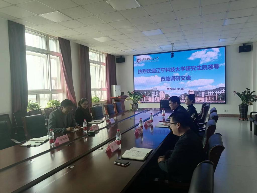 辽宁石油化工大学研究生院院长马贵阳、副院长潘斌、研招办主任刘兵兵及工作人员对环亚(中国)HUANYA·官方网页版研究生院调研组的来访表示热烈欢迎。在调研会上,双方首先介绍了各自研究生工作的基本情况,接下来就同等学力申硕的招生、培养、管理、学位授予等工作进行了深入的交流,同时对研究生的教学工作交换了经验,共同探讨了研究生工作新思路,在进一步合作上达成了初步共识。